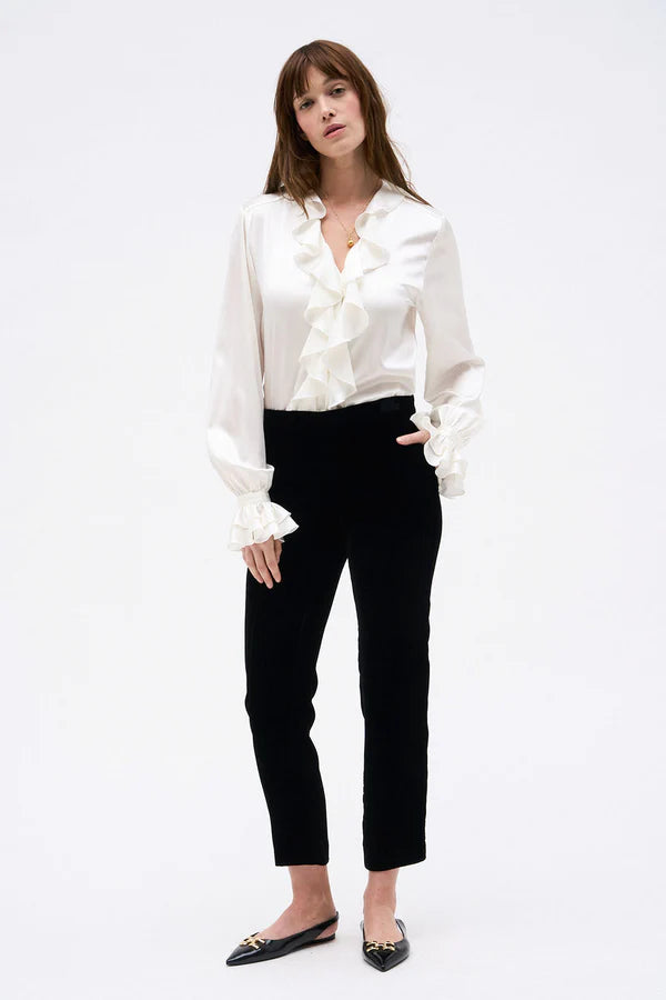 DMN LOLA RUFFLE STRETCH SILK BLOUSE - ECRU
