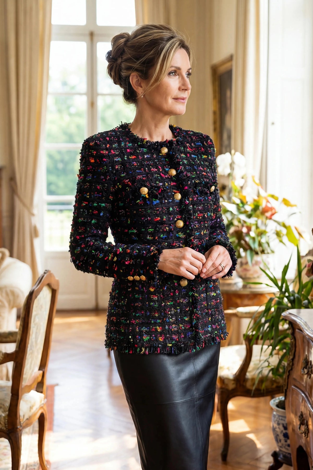 MARUSCHKA DE MARGO MULTI BLACK LONG TWEED JACKET