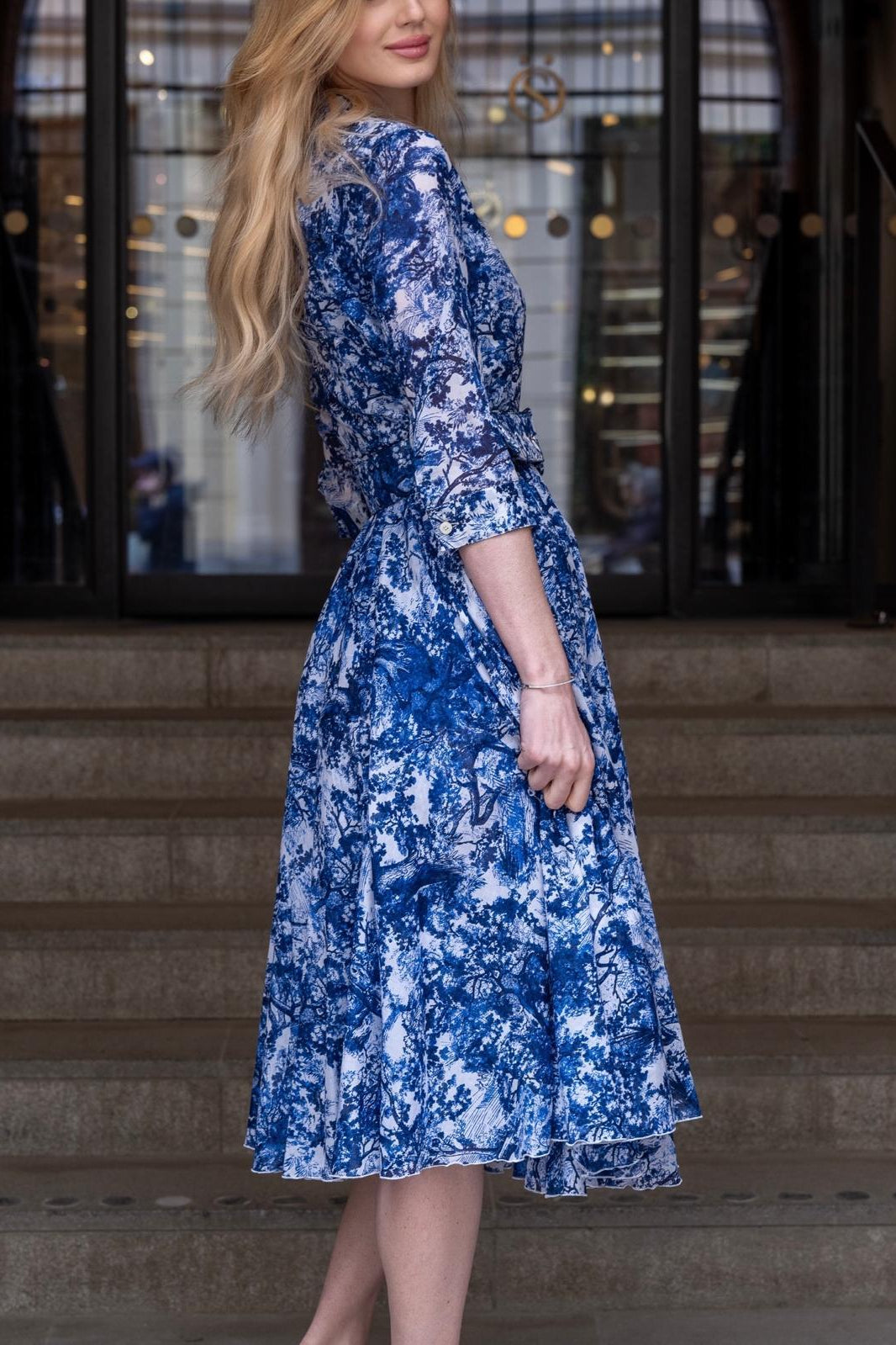 SAMANTHA SUNG ASTER DRESS SHIRT COLLAR 3/4 SLEEVE MIDI LENGTH COTTON MUSOLA (SAFARI TOILE)