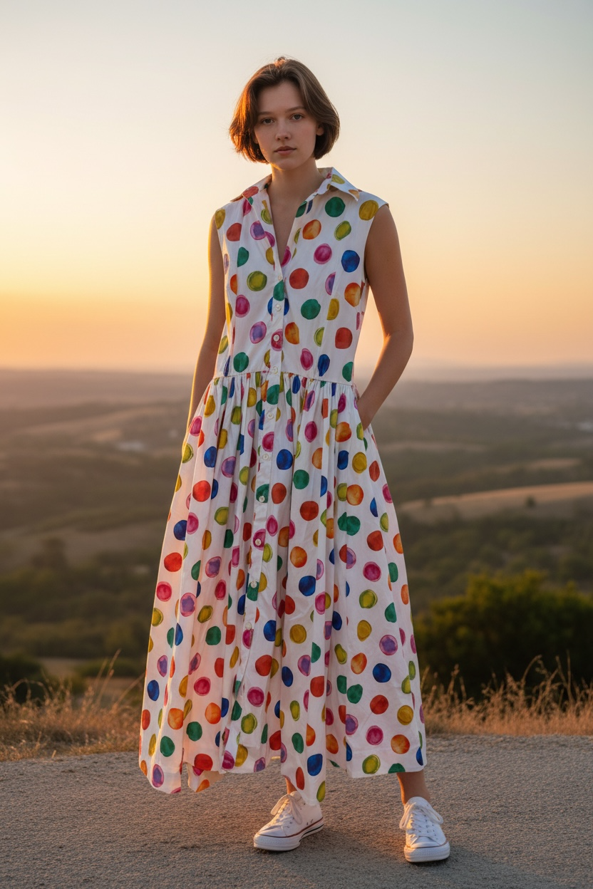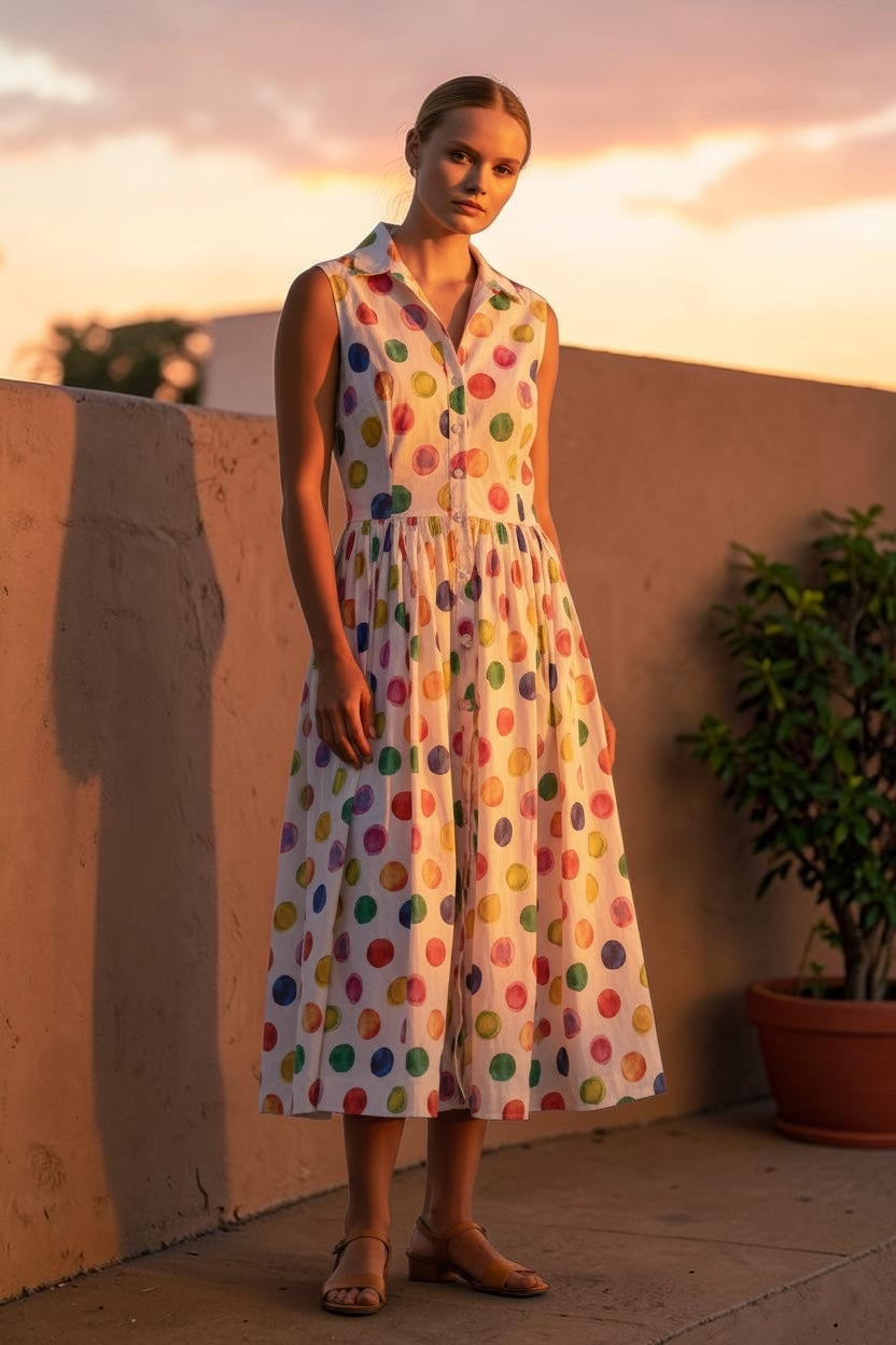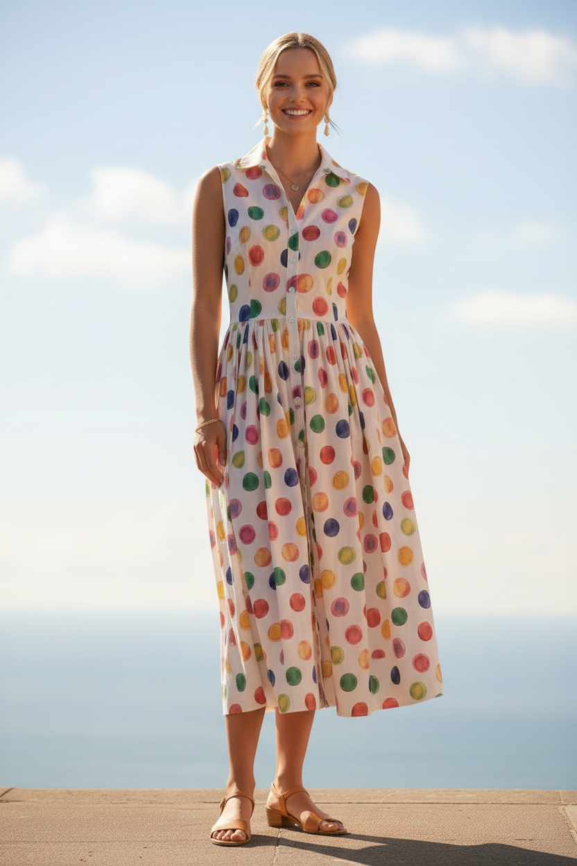 SAMANTHA SUNG ASTER POLKA DOT WATER COLOR DRESS