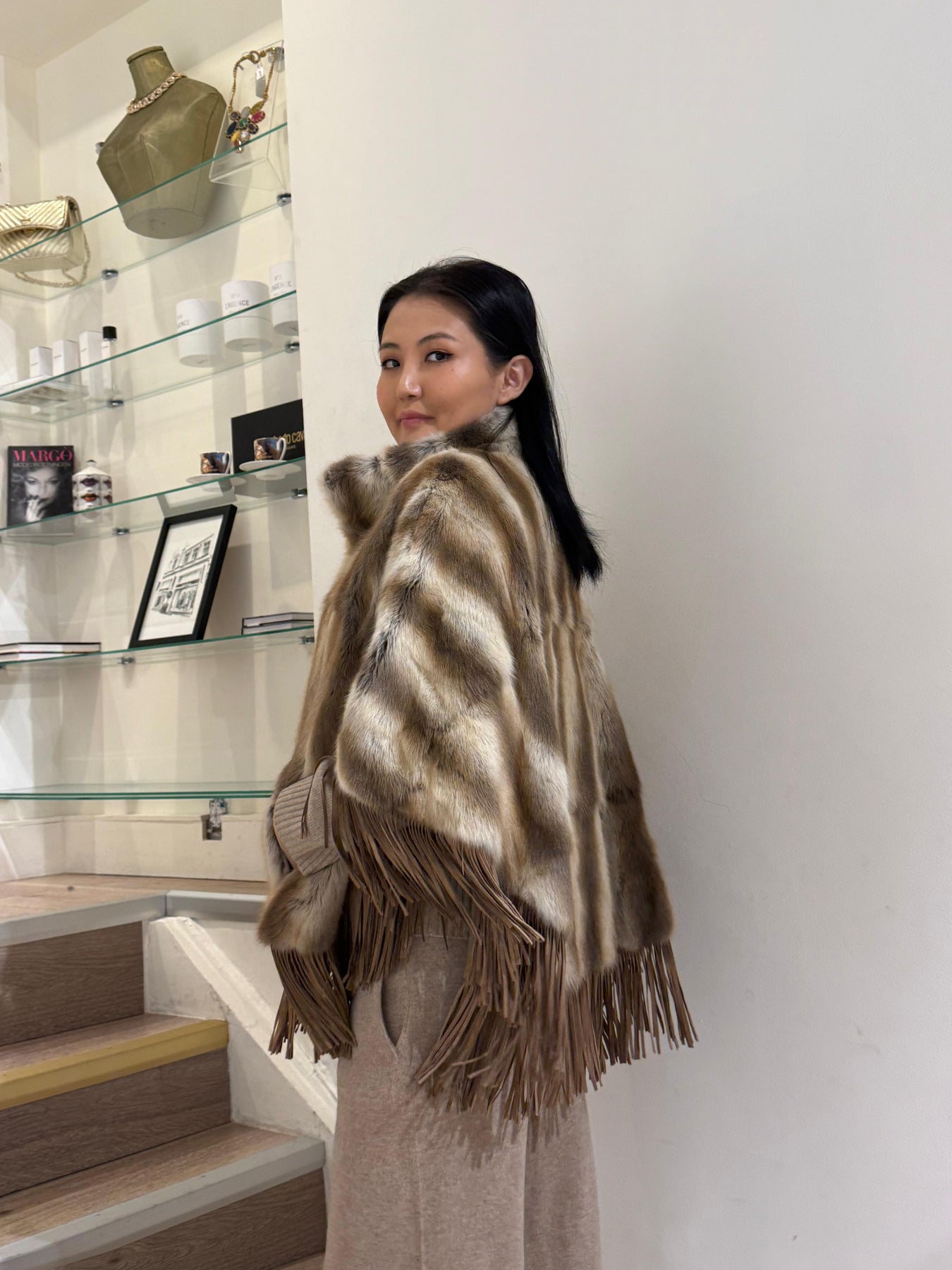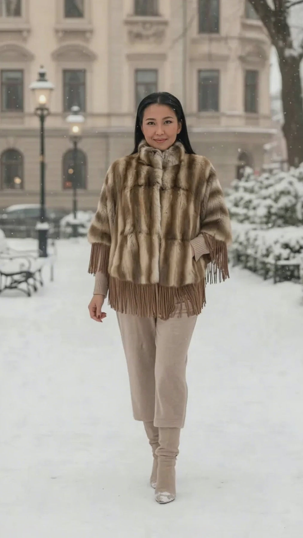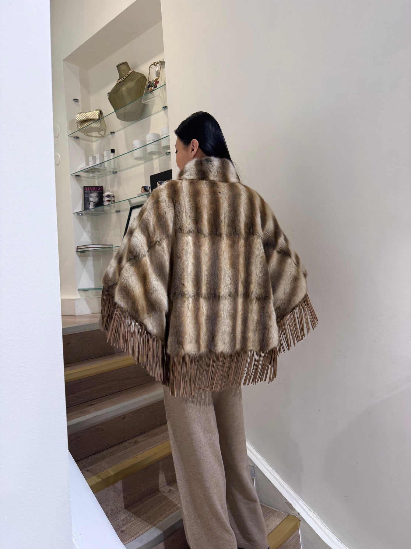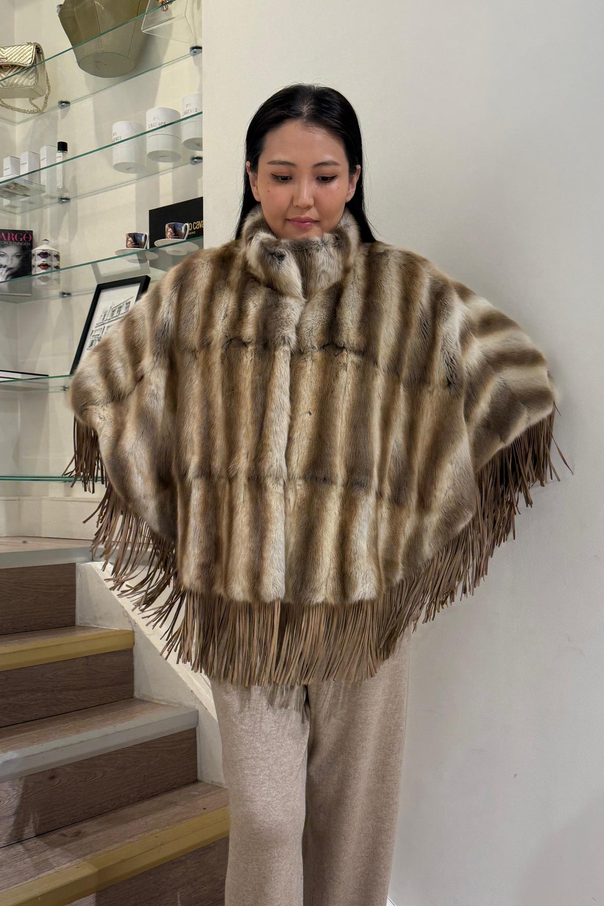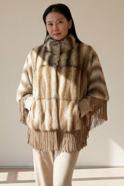 ELCOM FUR PONCHO CAPE WITH SUEDE TRIM