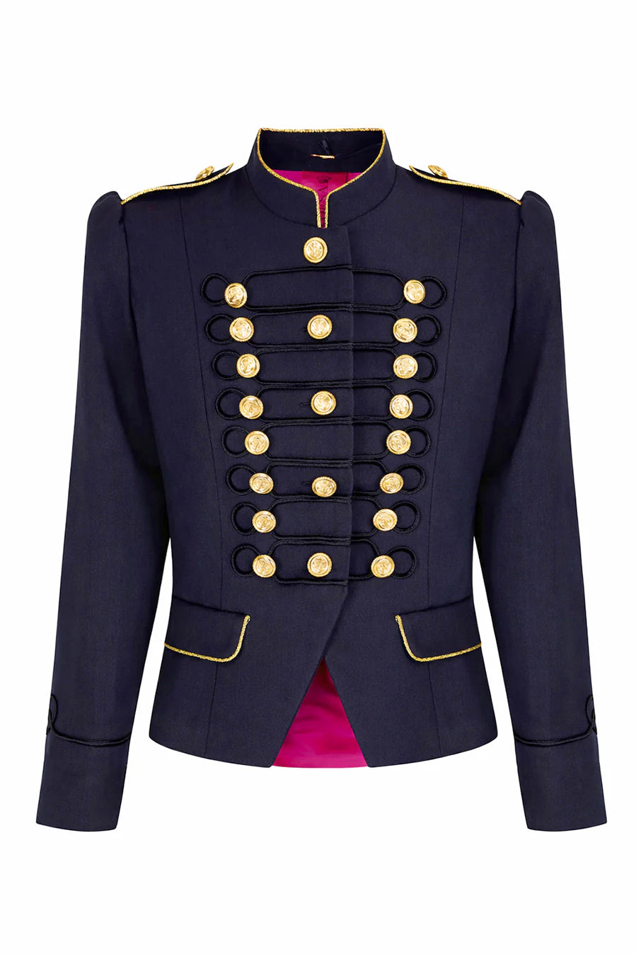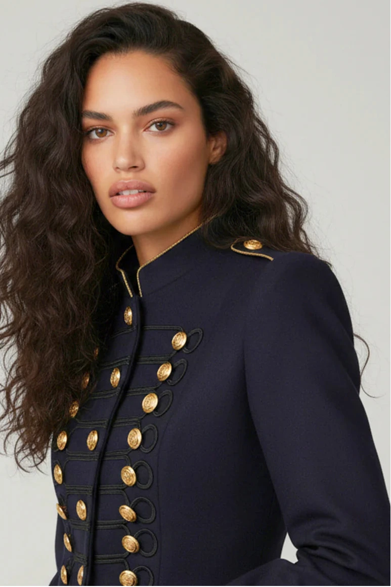 The Condesa Beatle blue jacket, embroidered in black, is one of La Condesa's great classics. It's a military-inspired blue twill jacket, fitted at the waist to flatter the figure.