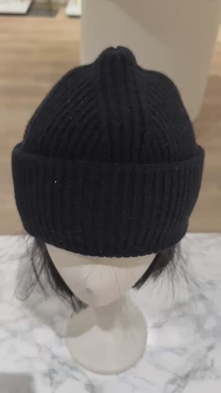 Knitted beanie with embellished micro rhinestones tone on tone. Material 30% cashmere 70% wool.