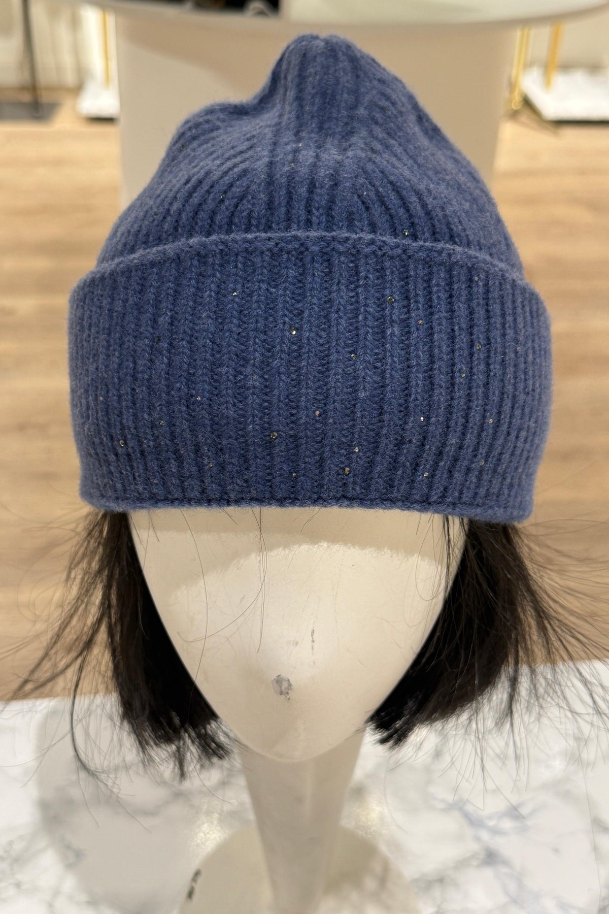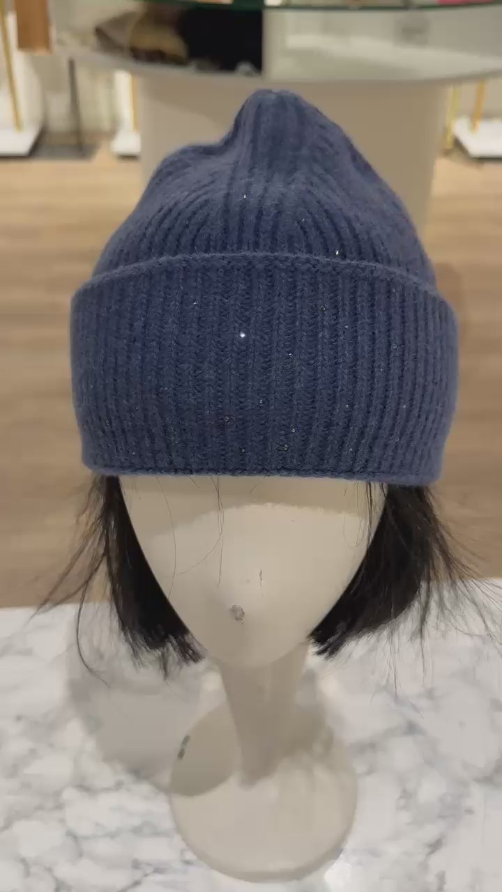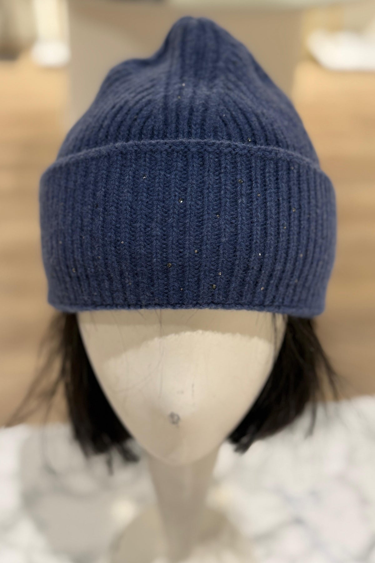 REGINA CASHMERE/WOOL BLEND BEANIE WITH MICRO RHINESTONES - NAVY