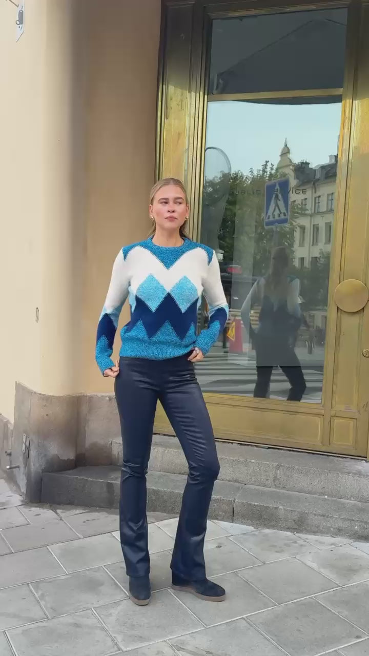 Knitted from a luxurious blend of 90% cashmere and 10% wool, it offers exceptional softness with a touch of structure. The intarsia pattern alternates solid and melange tones, creating depth and a natural gradient across the chevron design.