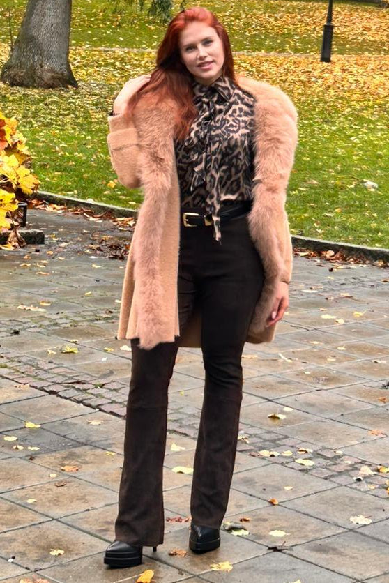 UTZON STRETCH SUEDE BOOTCUT LEG PANTS - BROWN