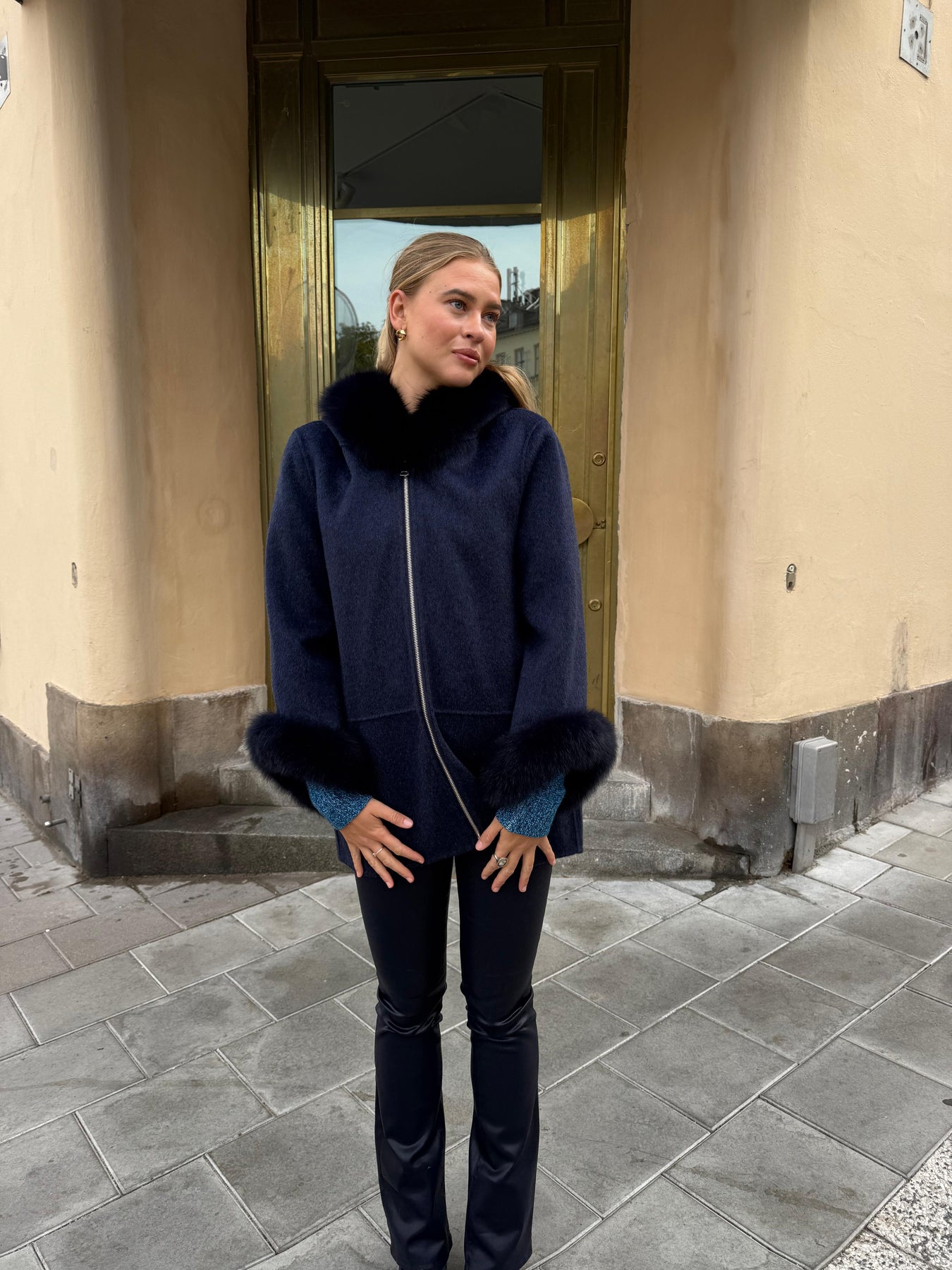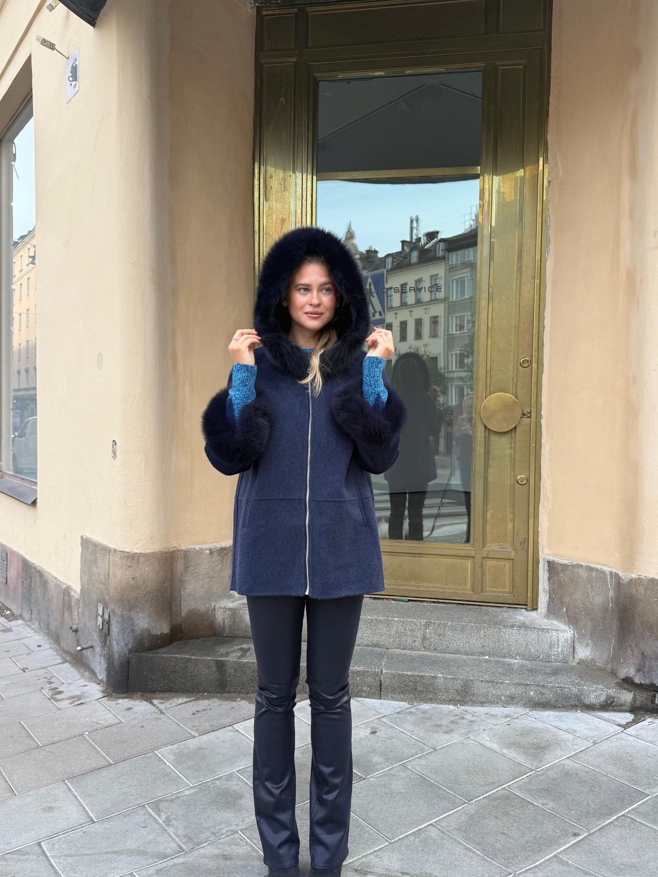 LEVINSKY FURS WOOL HOODED COAT- NAVY