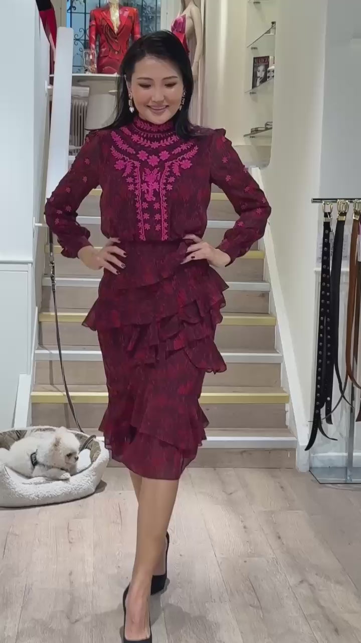 BORDEAUX coat with large Fox fur collar. It has pockets and closes with 2 buttons. Comfortable, abundant fit, it is recommended to order one size less; medium length (arrives above the knee). This garment is also available in the variant in ecological fur, or without fur: contact us for more info and any requests.