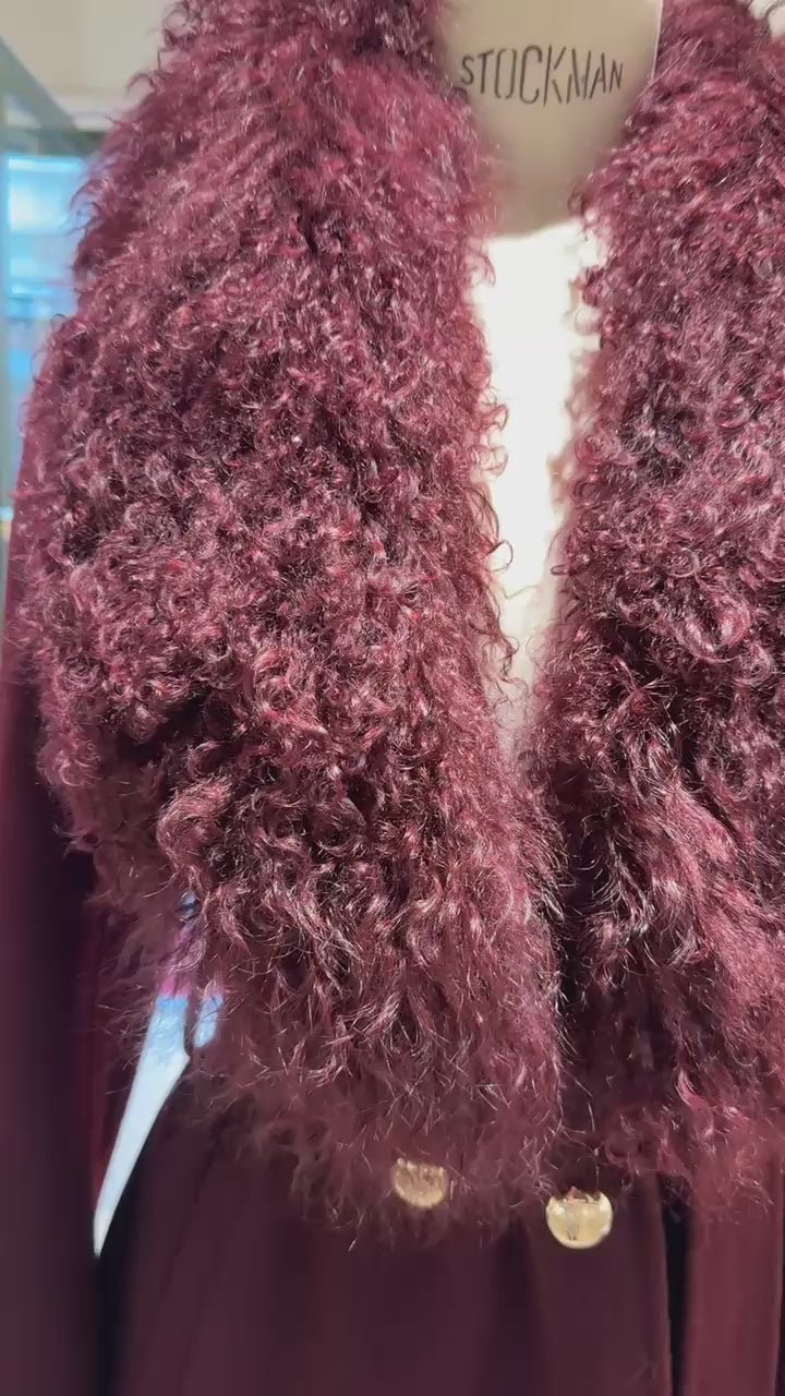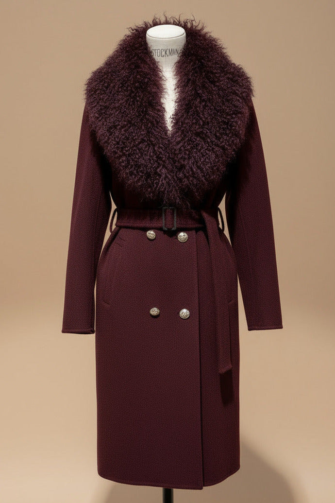 Cashmere blend coat with large fox fur collar. It has pockets and closes with 4 double-breasted buttons. Comfortable fit, medium length (reaches above the knee). This garment is also available in the faux fur variant, or without fur: contact us for more info and any requests.