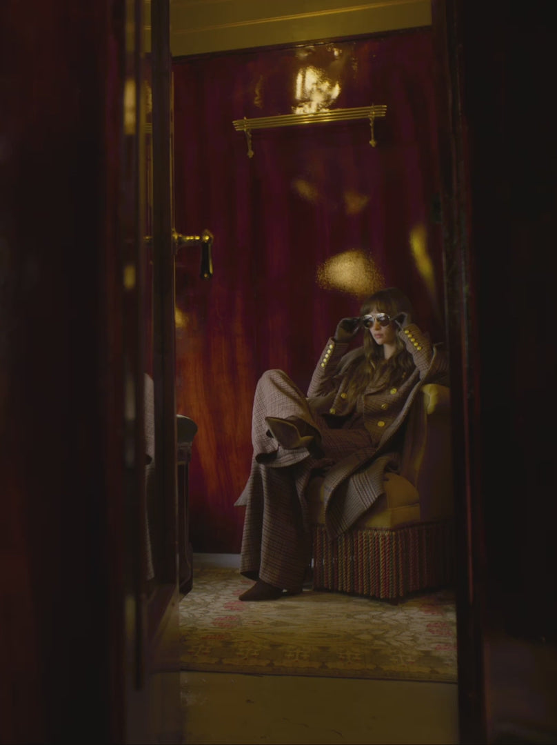 This style was featured in our Fall ‘25 NYFW presentation. The Bethany is a modern spin on heritage tailoring. Designed in a rich houndstooth plaid with warm burgundy and brown tones, it features structured shoulders, sharp lapels, and lion head buttons. Style with its matching pieces for maximum impact.