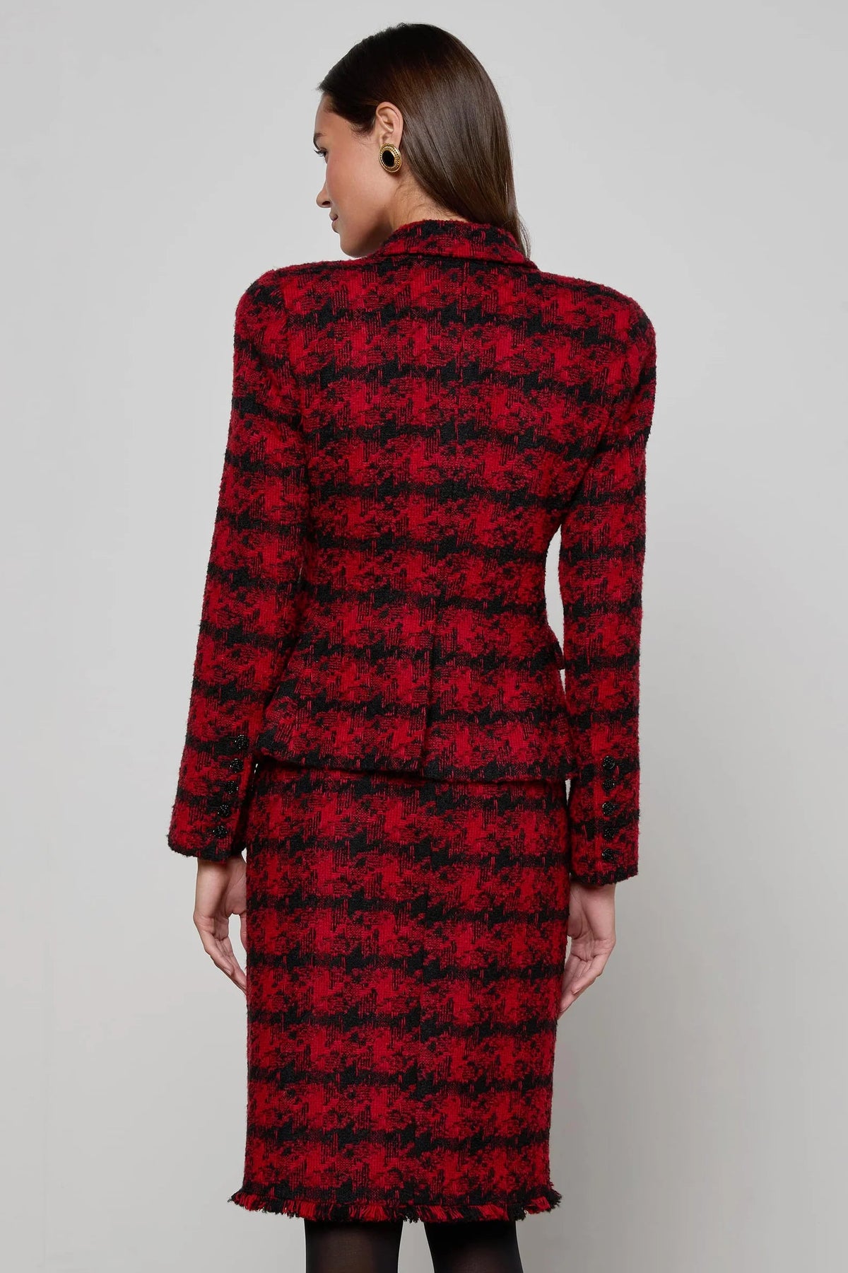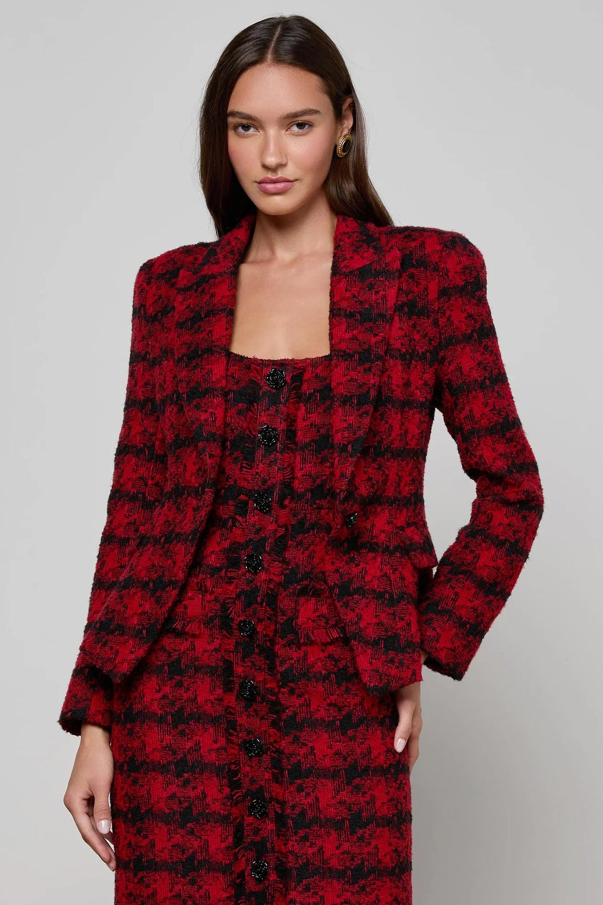 This style was featured in our Fall ‘25 NYFW presentation. The Kaisley blazer is now reimagined in a bold houndstooth. With a feminine slim fit and luxe textured fabric, it’s the perfect statement piece to elevate any look. Powerful and polished.