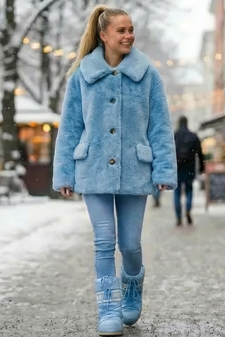 A FAUX FUR SHORT COAT IN A 50'S STYLE.