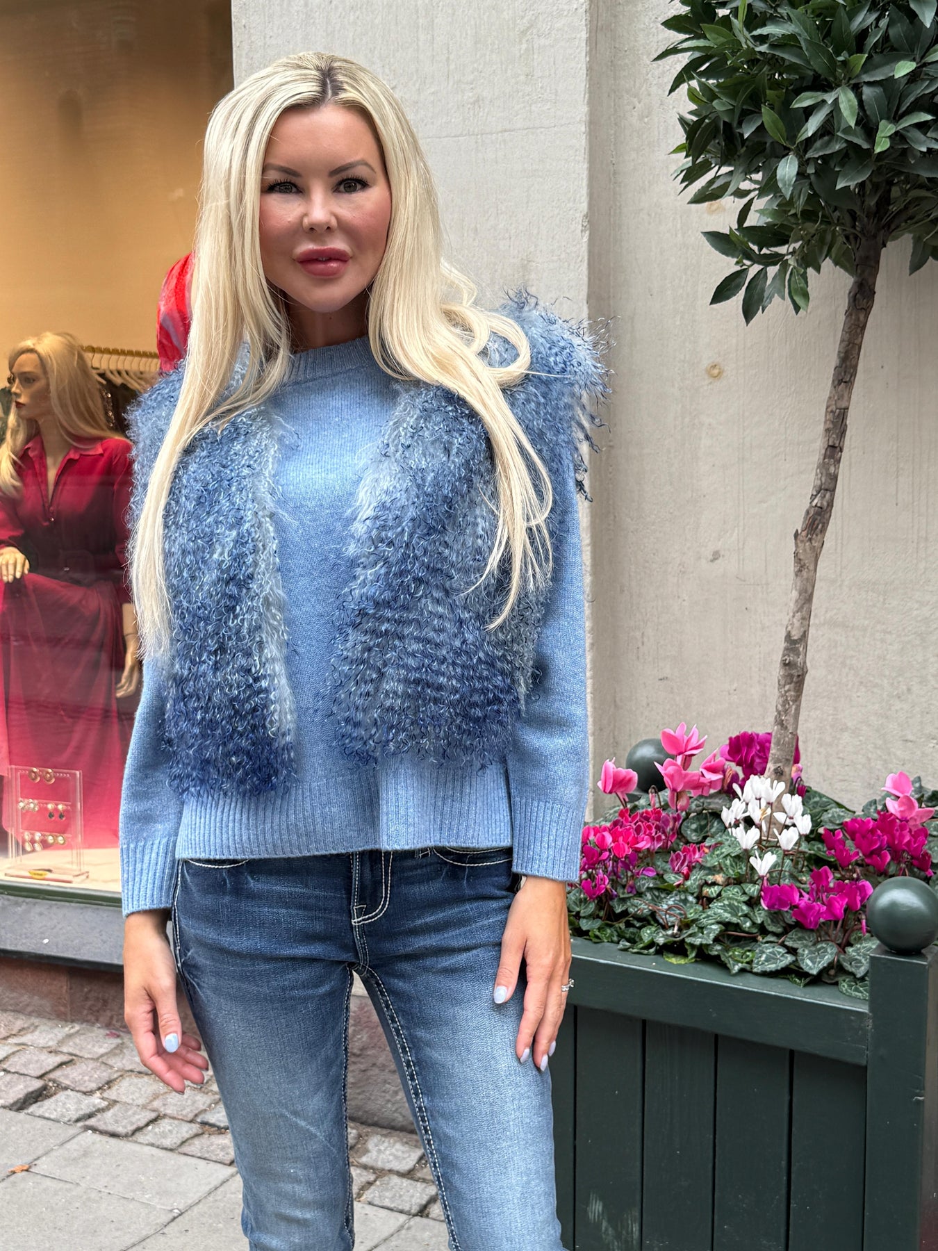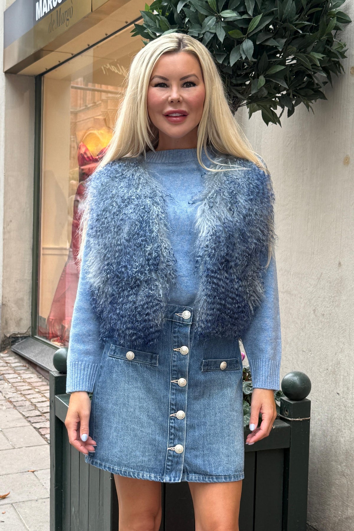 MARUSCHKA DE MARGO MONGOLIAN LAMB VEST - DENIM BLUE