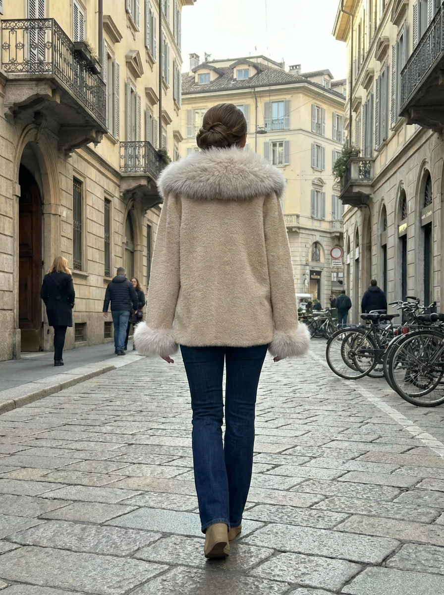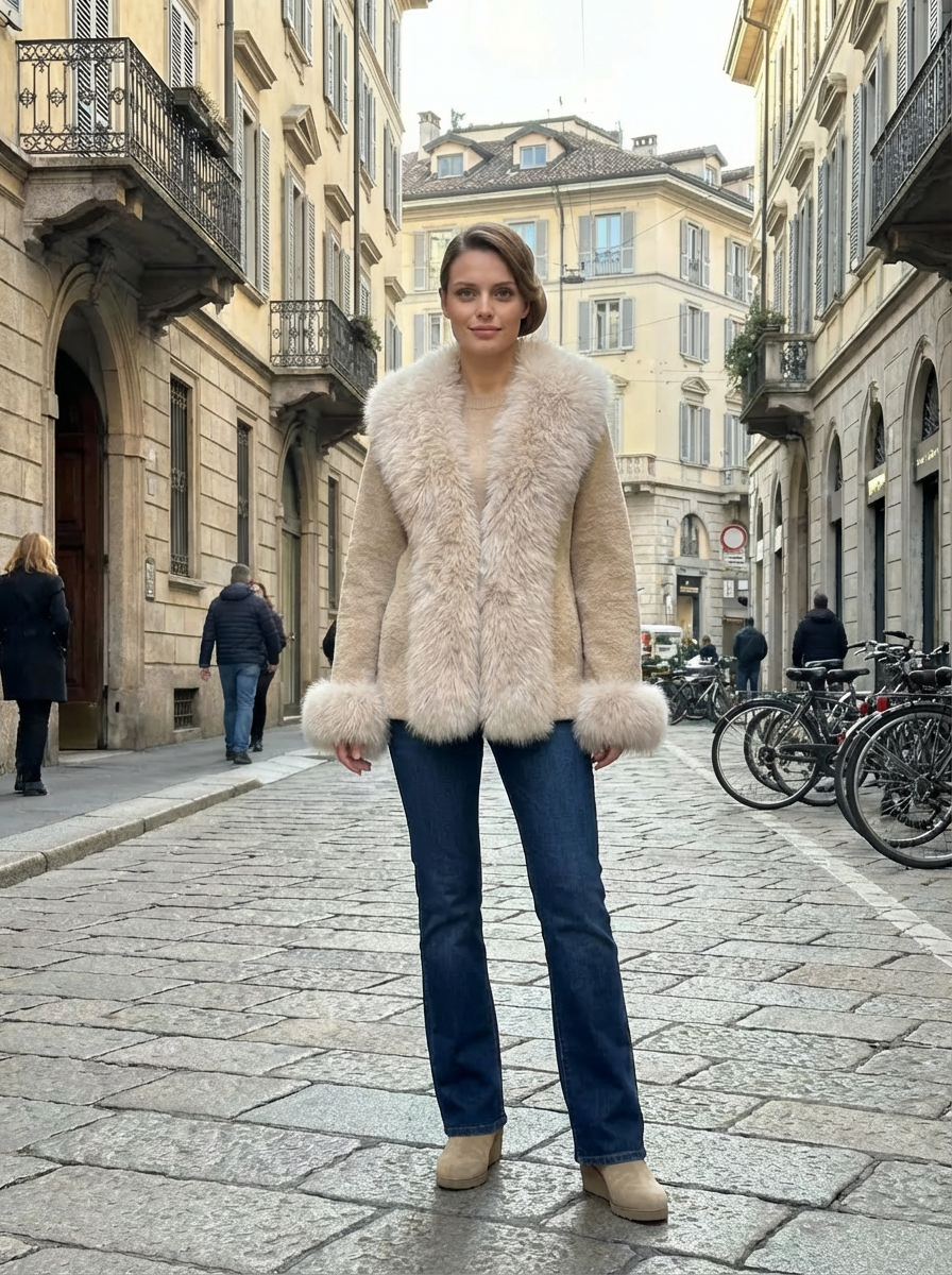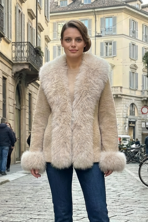 REGINA WOOL CASHMERE BLEND & FOX FUR TRIM JACKET - SAND