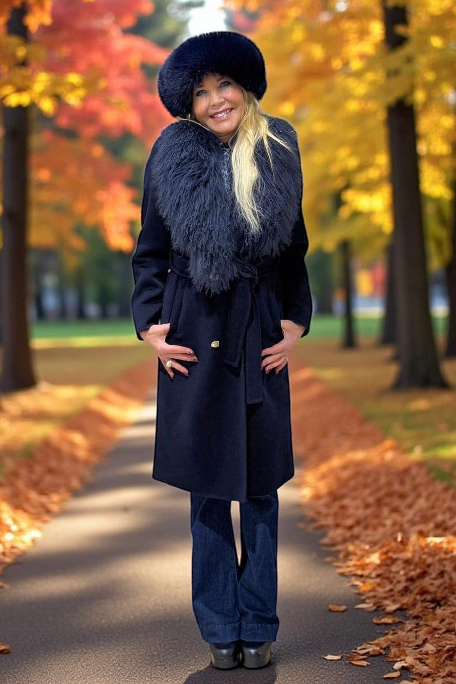 REGINA WOOL CASHMERE BLEND & MOGOLIAN LAMB - NAVY BLUE