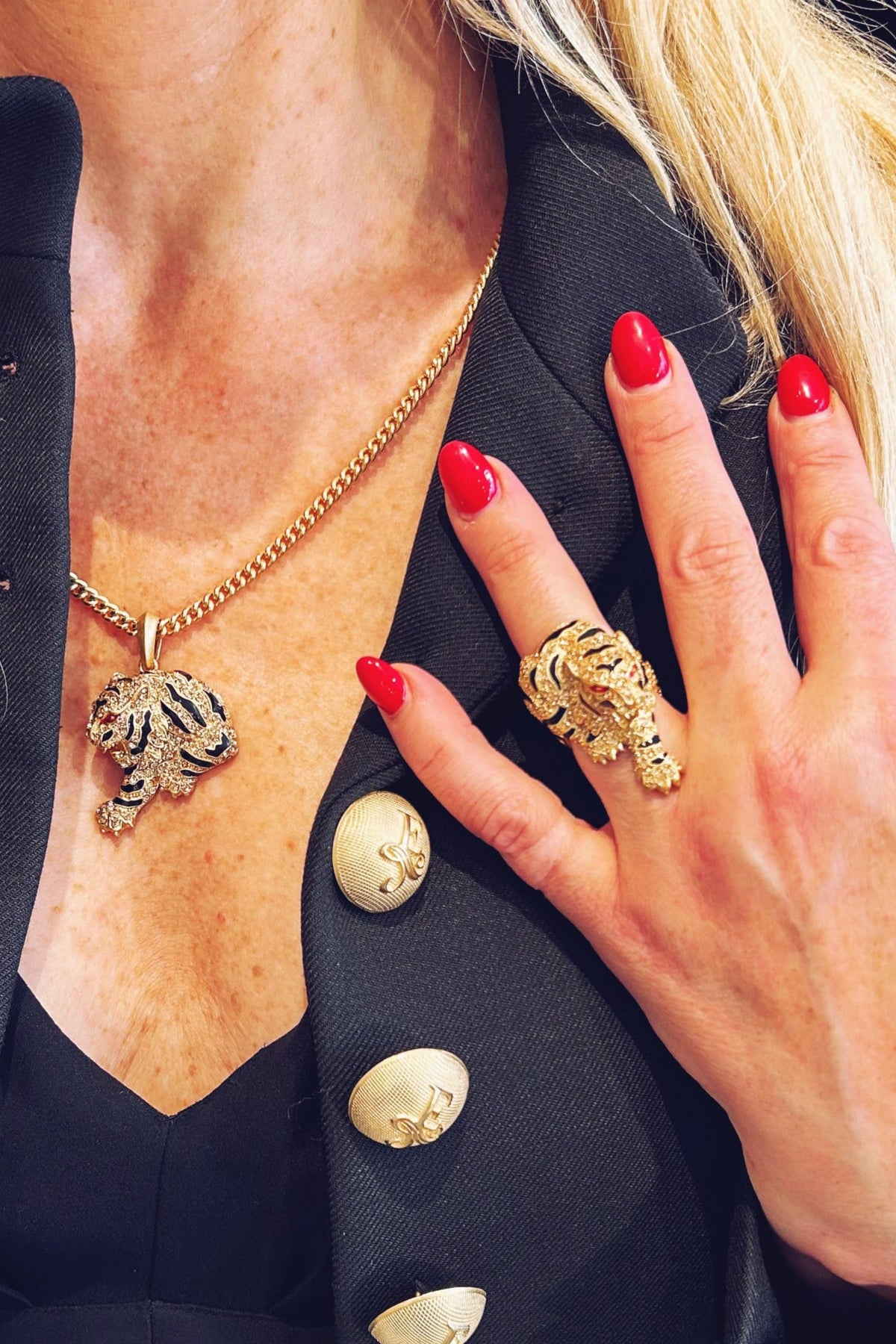 ROBERTO CAVALLI GOLD NECKLACE WITH TIGER PENDANT
