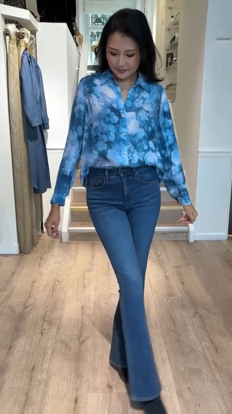 In a sophisticated dark wash, the Beverly jean features a high-rise waist that is fitted through the hips and thighs with a subtly flared leg. High quality stretch denim offers a flattering look with a flexible fit. Tuck in any of our tops and add sky-high heels for an elongating silhouette.