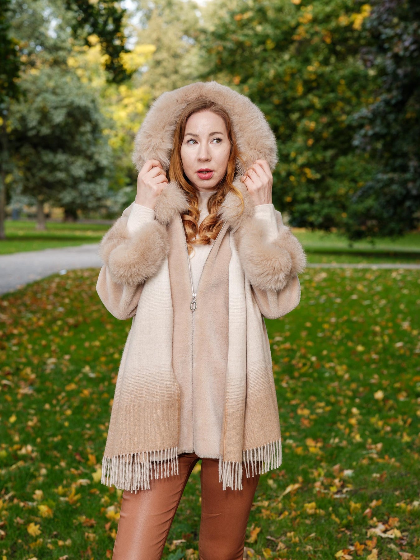 LEVINSKY FURS AIR WOOL JACKET WITH FUR - LIGHT CAMEL