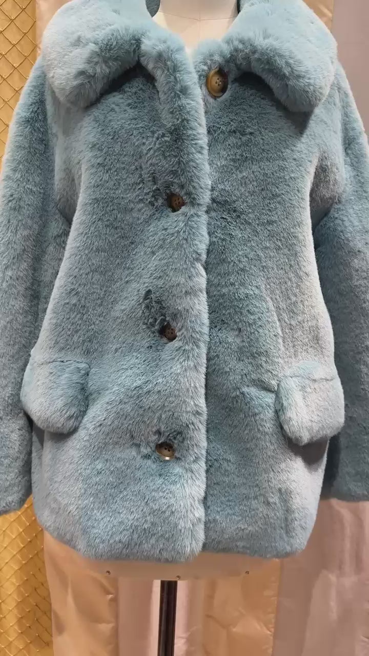 A FAUX FUR SHORT COAT IN A 50'S STYLE.
