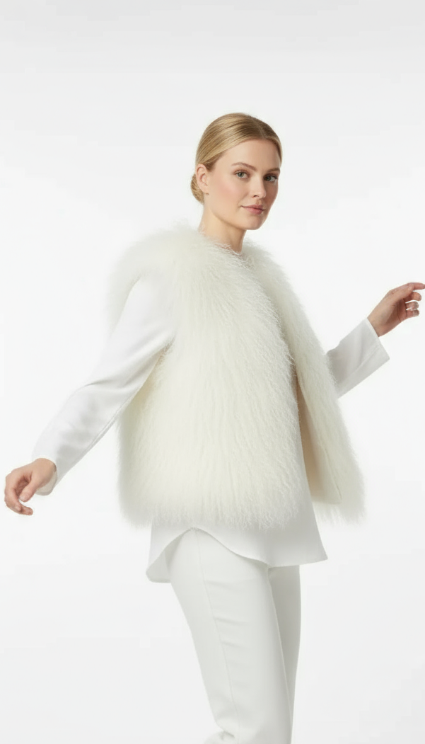 MARUSCHKA DE MARGO MONGOLIAN LAMB VEST - ECRU